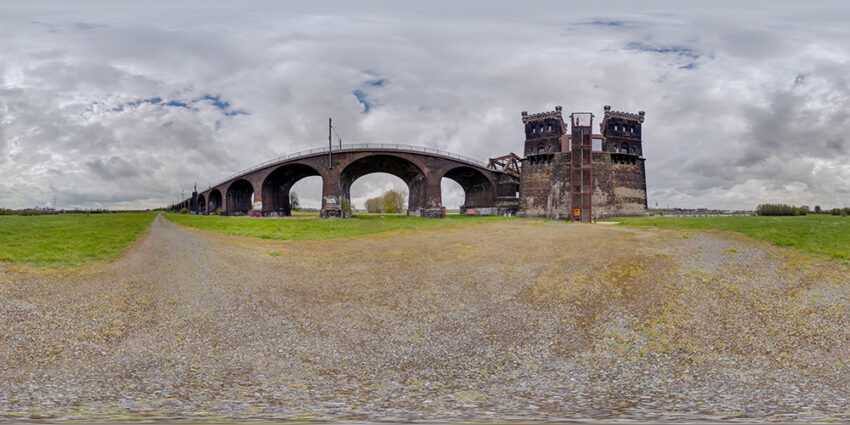 Die Duisburg-Hochfelder Eisenbahnbrücke verbindet die Stadtteile Hochfeld und Rheinhausen. Ende 1873 in Betrieb genommen wurde die Rheinbrücke bereits 1927 nach Kriegszerstörung ersetzt. Im Umfeld der Brücke befindet sich der Rheinpark auf der Ostseite und gegenüberliegend in Rheinhausen der Rheinuferpark. Genauere Informationen zu diesem Bauwerk findet man auf Wikipedia unter: Duisburg-Hochfelder Eisenbahnbrücke